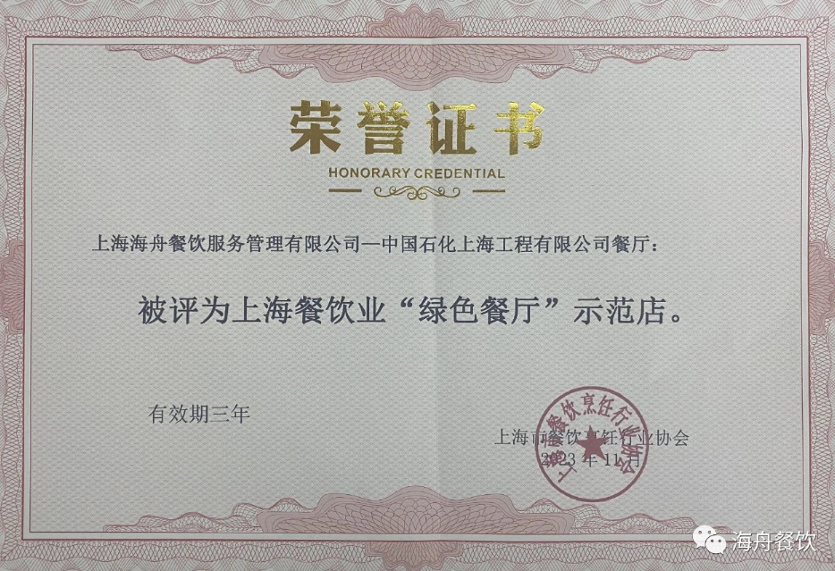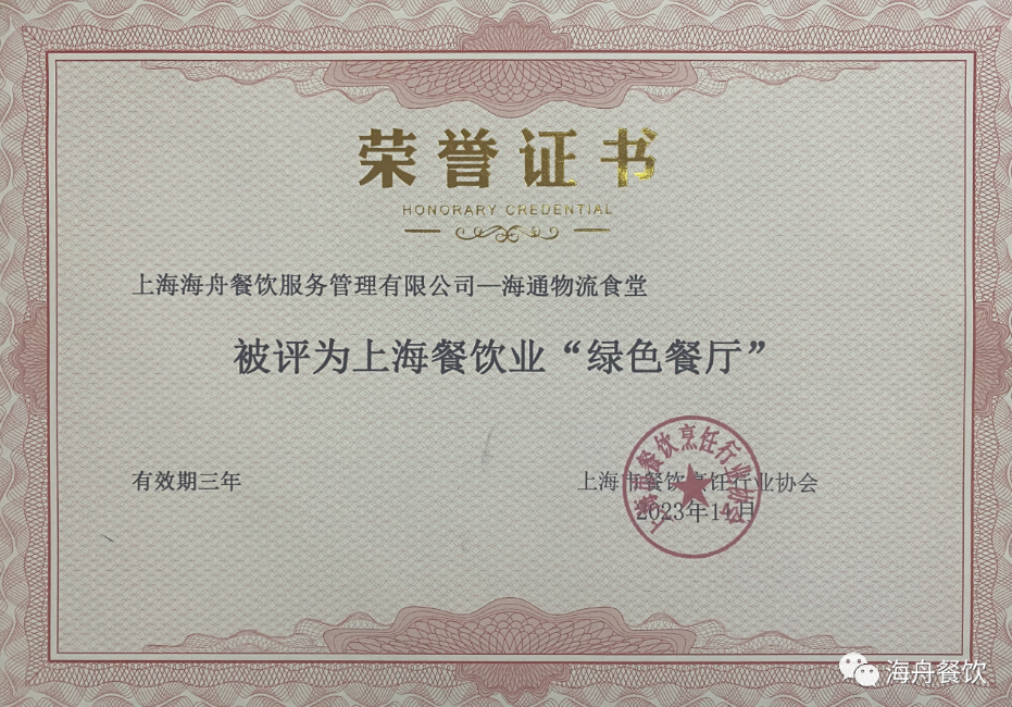我司新(xīn)增两个“绿色餐厅”殊荣 | 动态新(xīn)闻 | 行业洞见 | 上海海舟餐饮服務(wù)管理(lǐ)有(yǒu)限公司